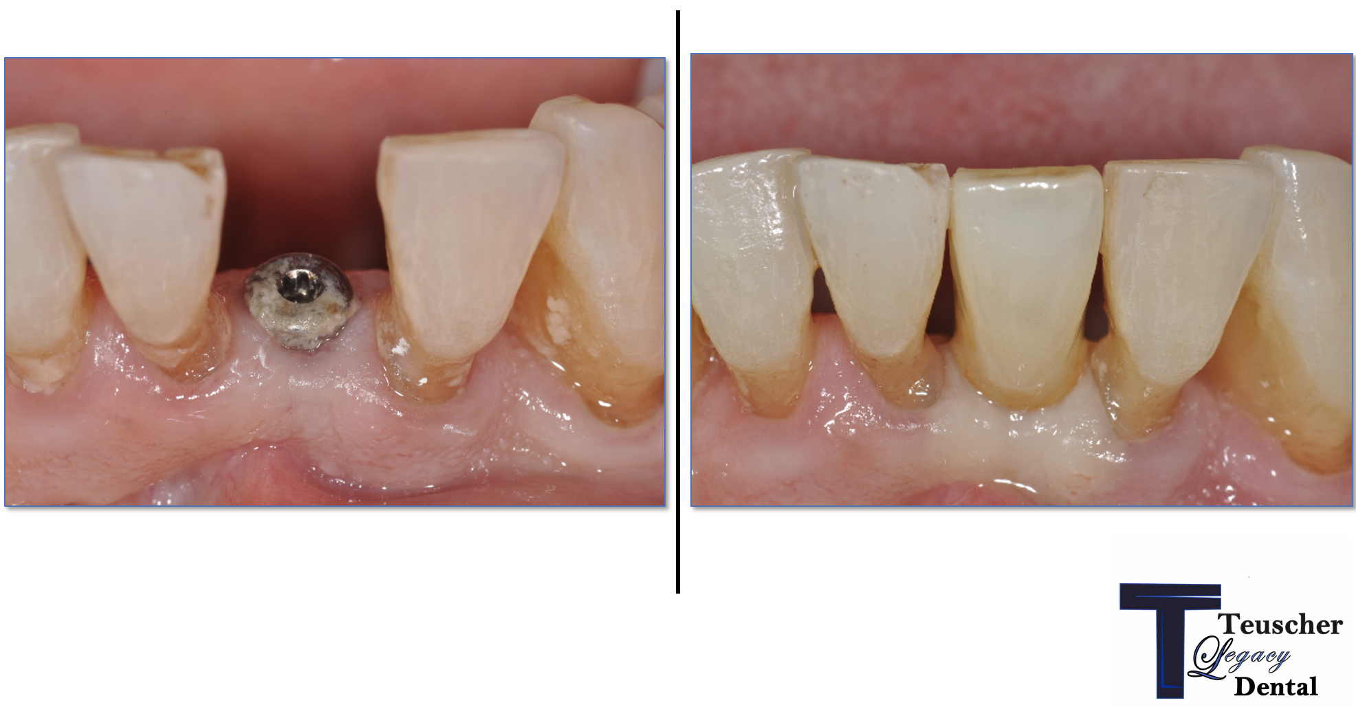 A beautiful dental implant crown before and after from Teuscher Legacy Dental